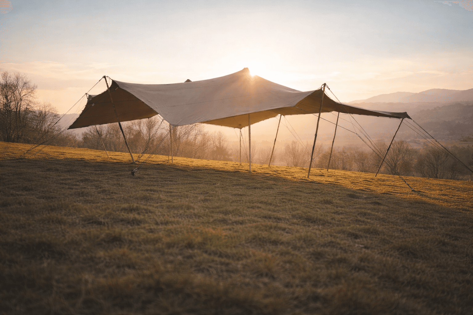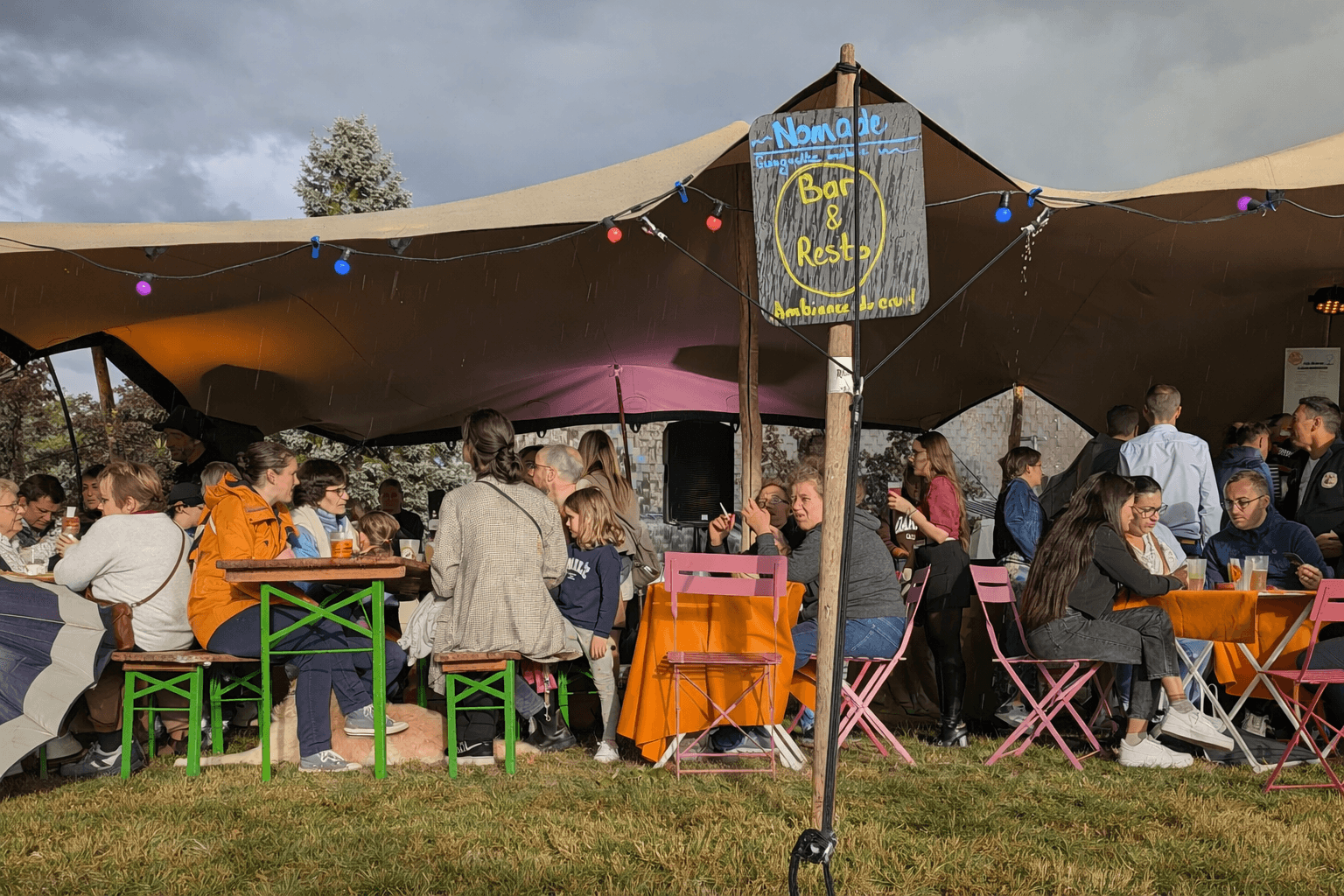 Notre tente nomade transforme l'espace et abrite les convives de la chaleur et de la pluie.